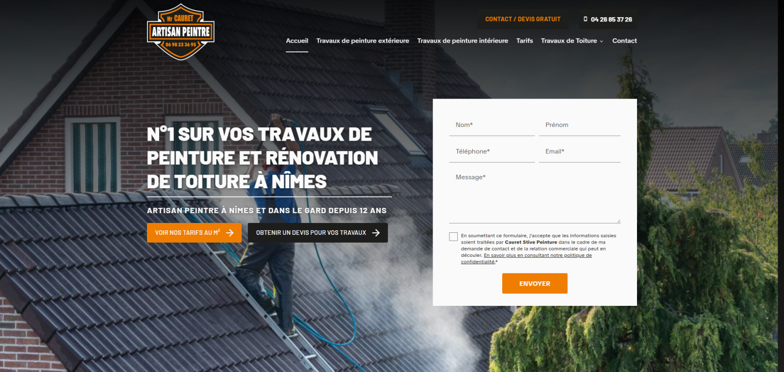 Le domaine de la peinture et de la rénovation est très concurrentiel. Pour que Cauret Peinture se démarque, une stratégie SEO sur mesure est indispensable. Notre agence met en place une optimisation complète du site autour de mots-clés stratégiques comme “peintre à Nîmes”, “entreprise de peinture dans le Gard”, “ravalement de façade Nîmes”, "devis peinture extérieur Nîmes" ou encore “peinture décorative intérieure”. L’objectif : attirer des clients réellement intéressés par des prestations de qualité.