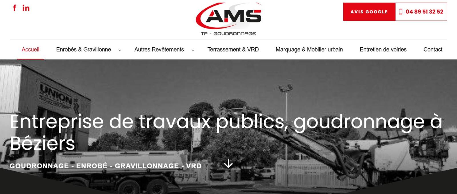 Contactez notre agence web pour création de site référencé Google à Béziers pour AMS TP GOUDRONNAGE dès aujourd’hui pour un devis gratuit et donnez un nouvel élan à votre visibilité en ligne !