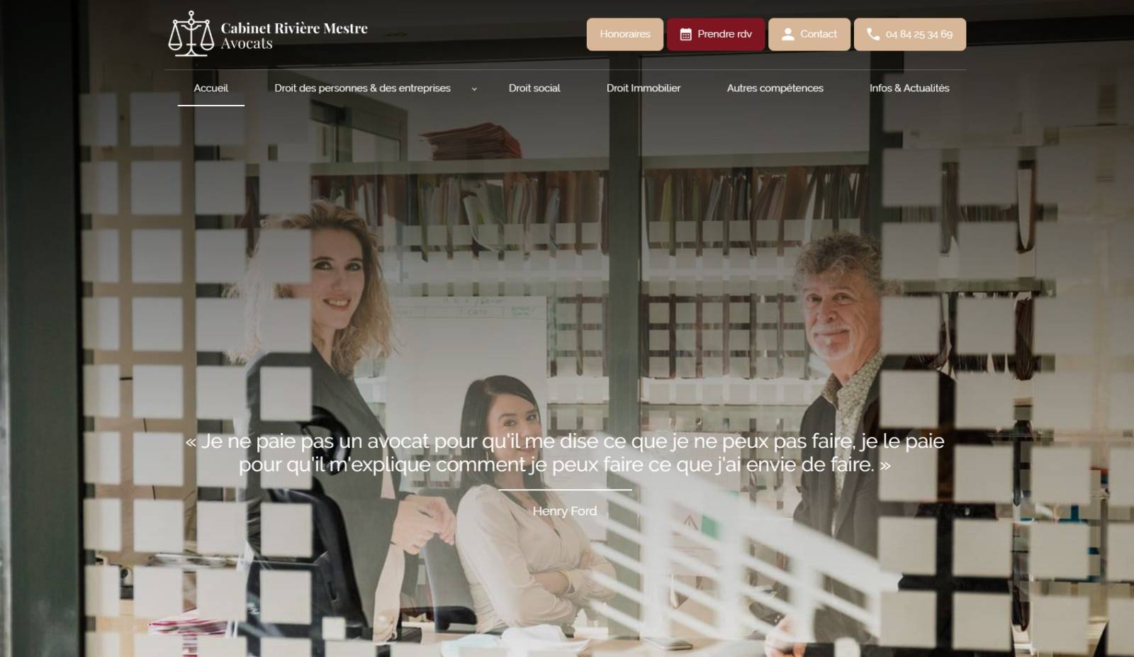 Le cabinet d’avocats Rivière Mestre, installé à Villeneuve-lès-Avignon, a récemment repris les activités du cabinet Demarquette Marchat. Ce dernier avait sollicité notre agence Jalis dès 2023 pour renouveler entièrement son site internet. L’idée centrale était claire : créer une vitrine numérique sérieuse, fluide et adaptée, permettant au cabinet d’accroître progressivement sa visibilité dans le Gard, le Vaucluse, à Avignon, Villeneuve-lès-Avignon naturellement, ainsi qu'à Nîmes.