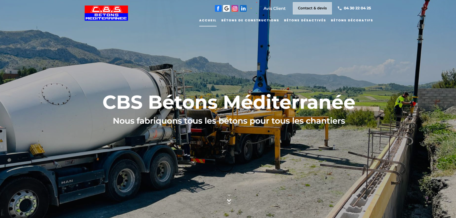 Création de site web et référencement à Vendargues proche de Montpellier pour CBS BETON : fabricant de béton tous chantiers.