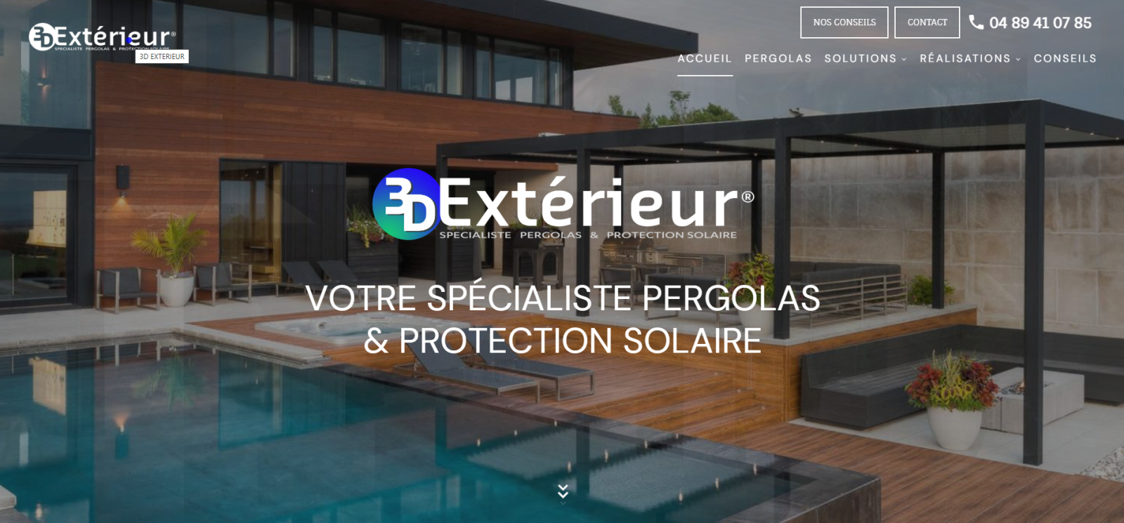 Conception du site internet pour 3D Exterieurs, spécialiste pergolas et protection solaire à Villevieille proche de Sommières